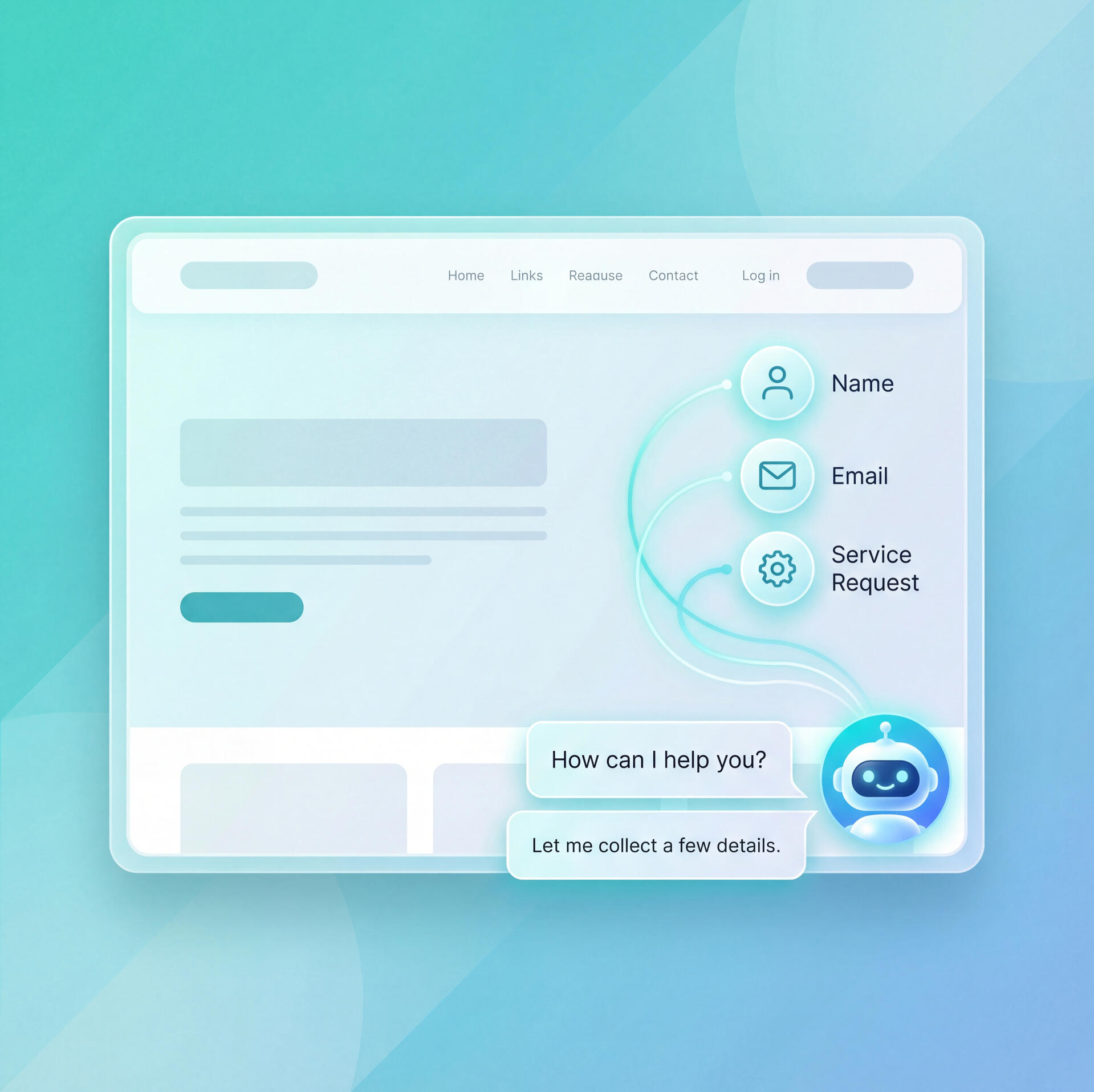 Engage website visitors with an AI chat bot that answers questions, collects service-related information, and routes inquiries automatically