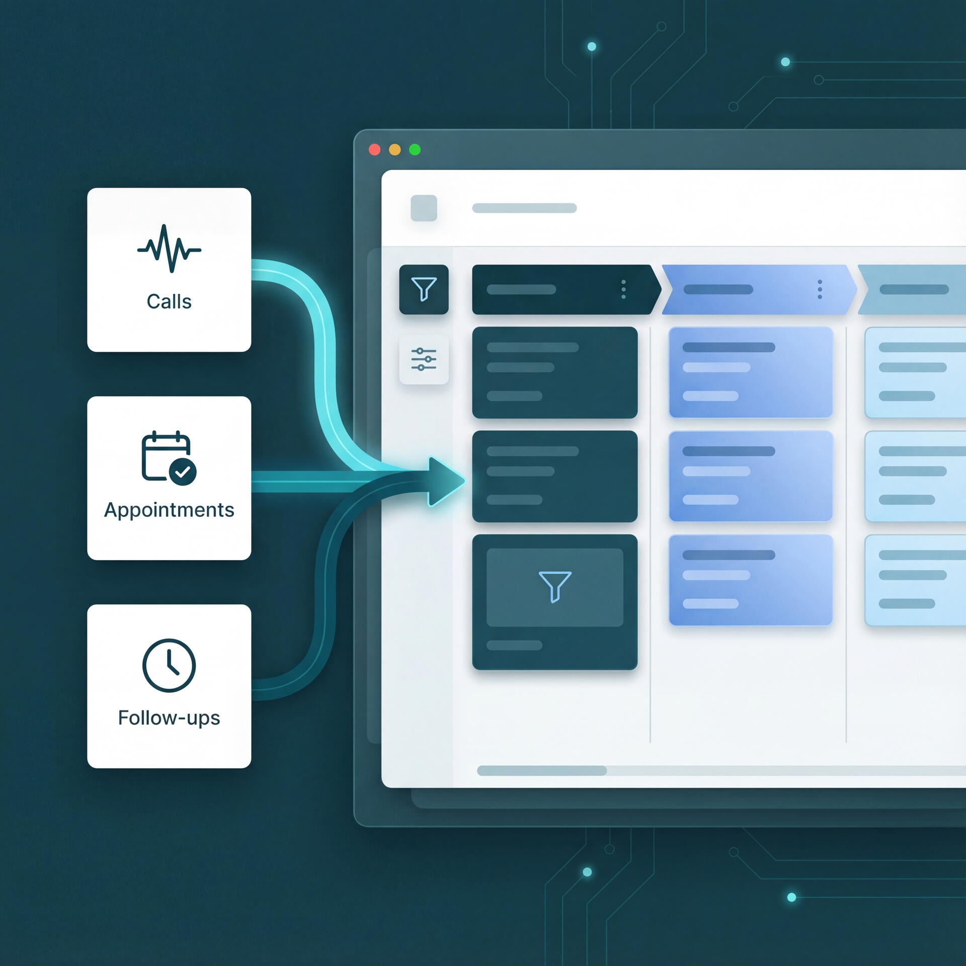 Customer calls, messages, and bookings are tracked in a centralized CRM with automated internal pipelines and workflows.