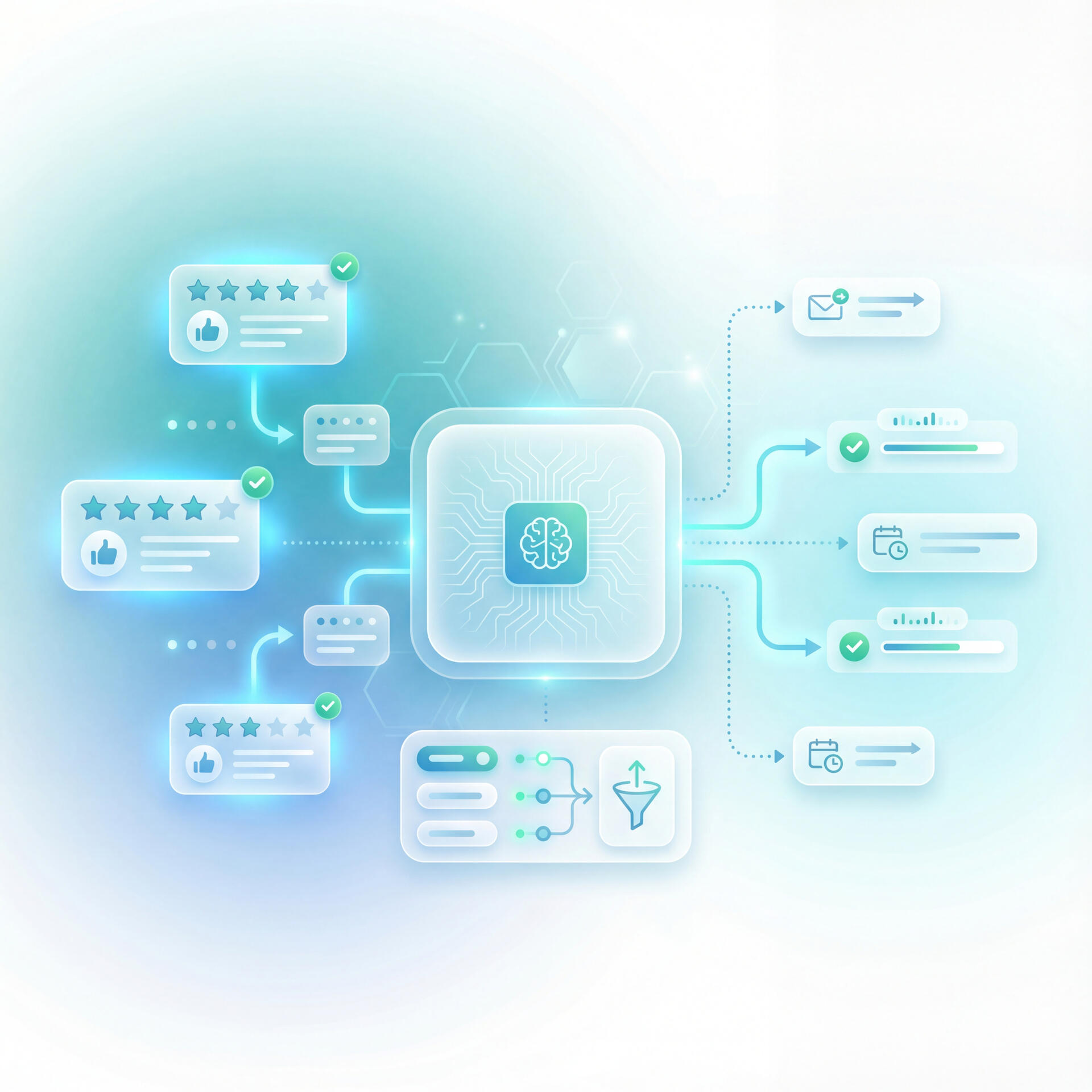 Automated service-related review requests, review monitoring, and alerts for negative feedback.